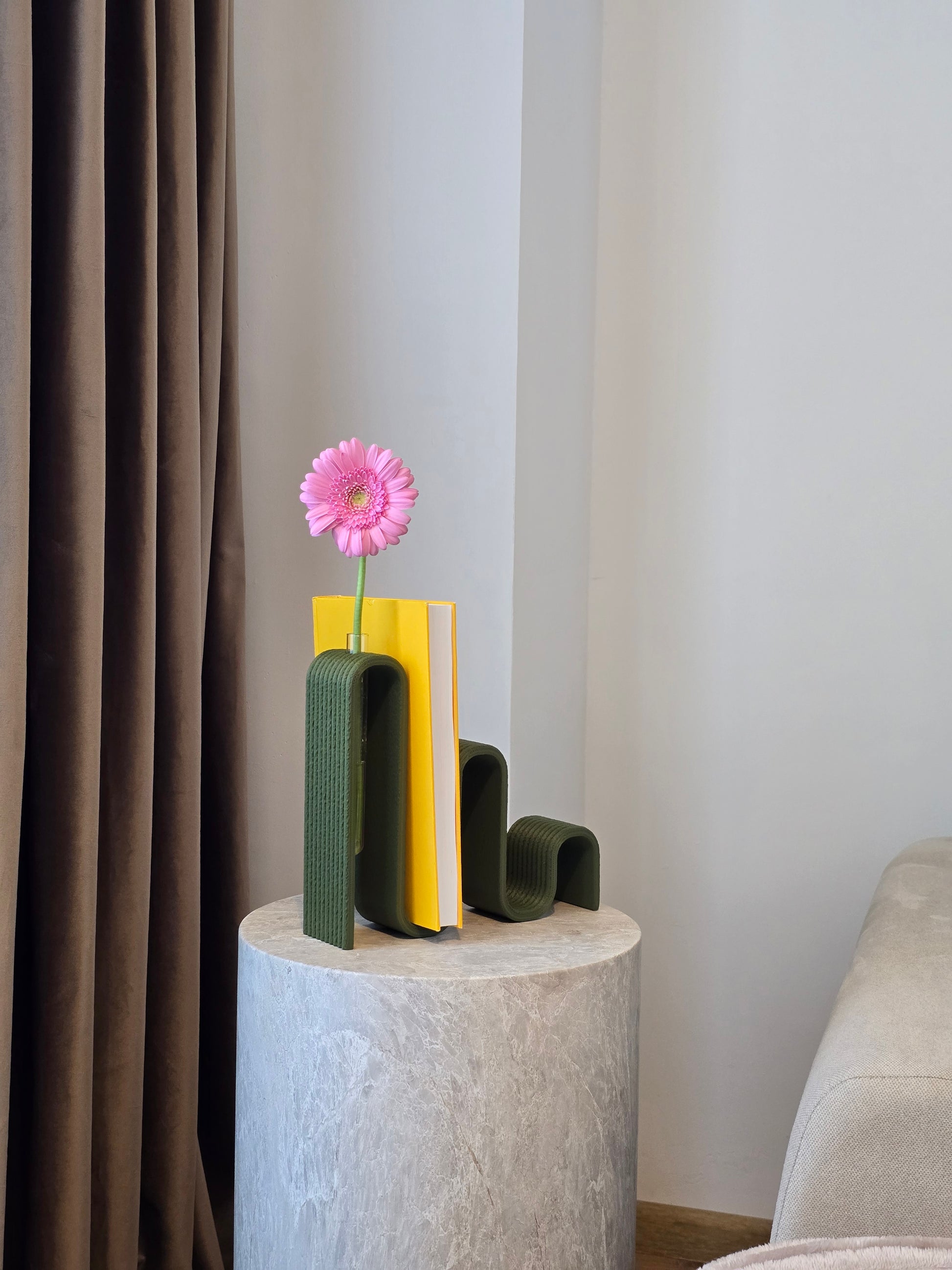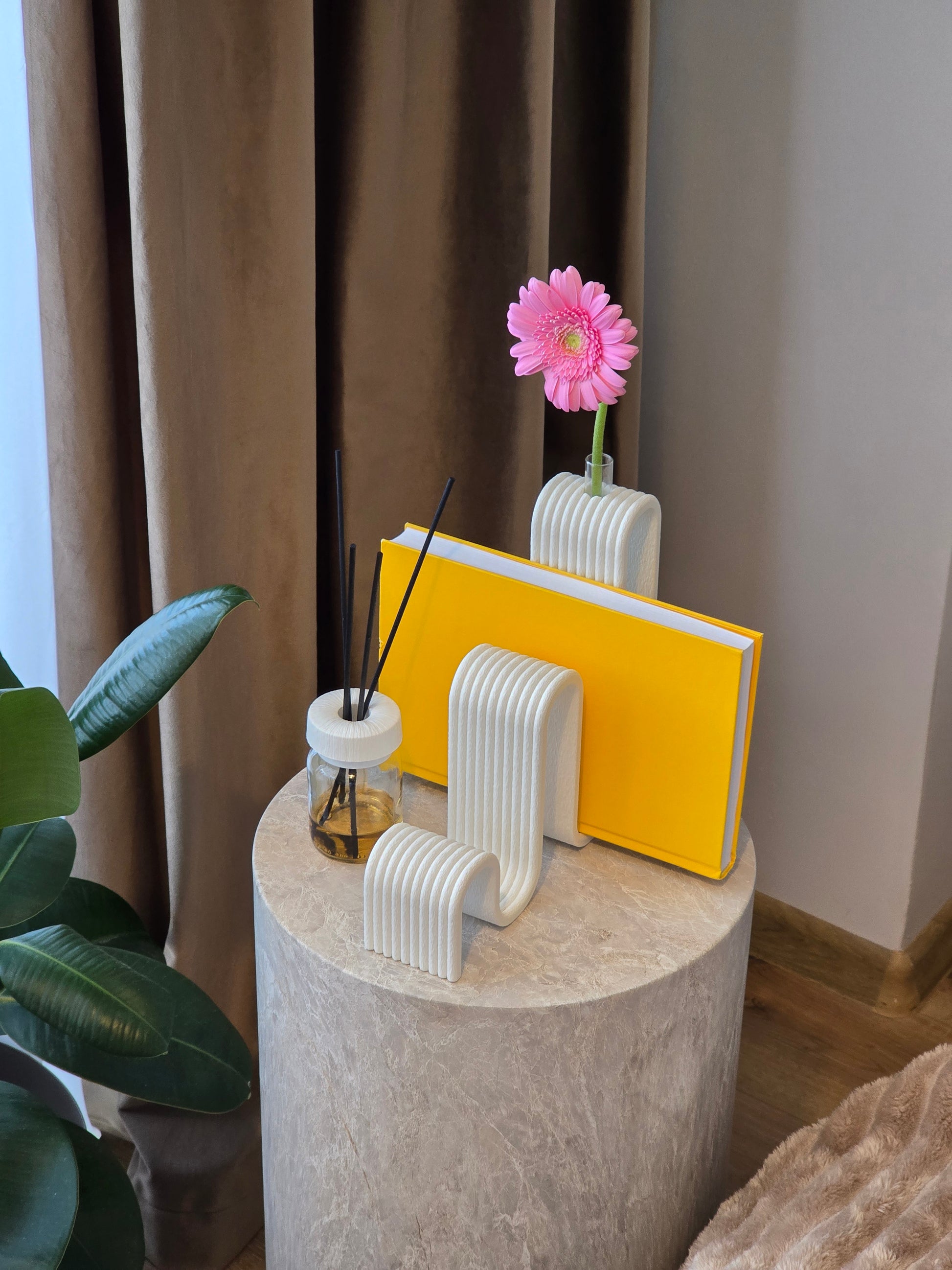 Callis este un suport pentru carti cu o eprubeta integrata ce poate sustine o floare naturala, artificiala sau uscata. Inspirat de coloanele arhitecturii romane, imbina liniile sculpturale cu un design functional.